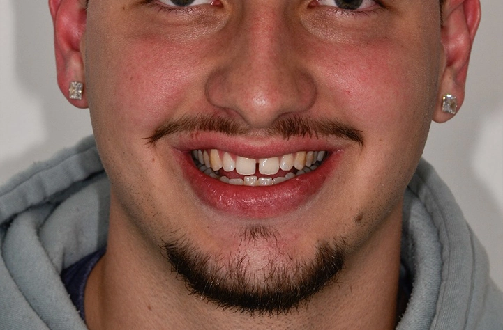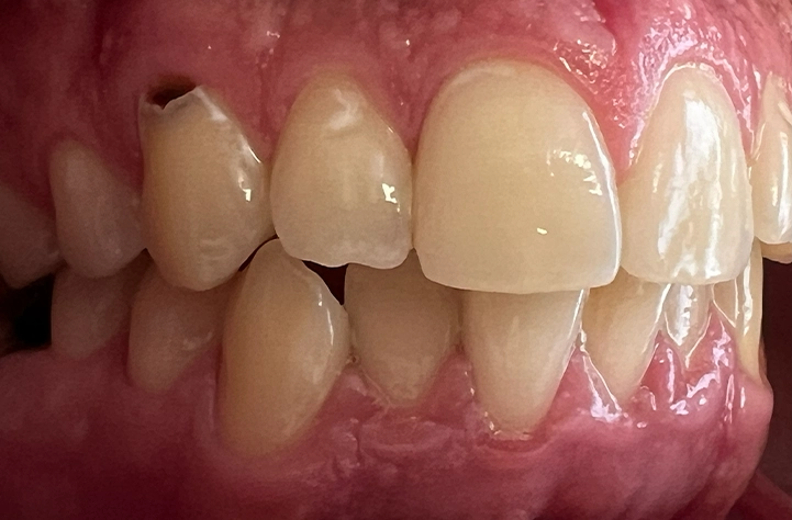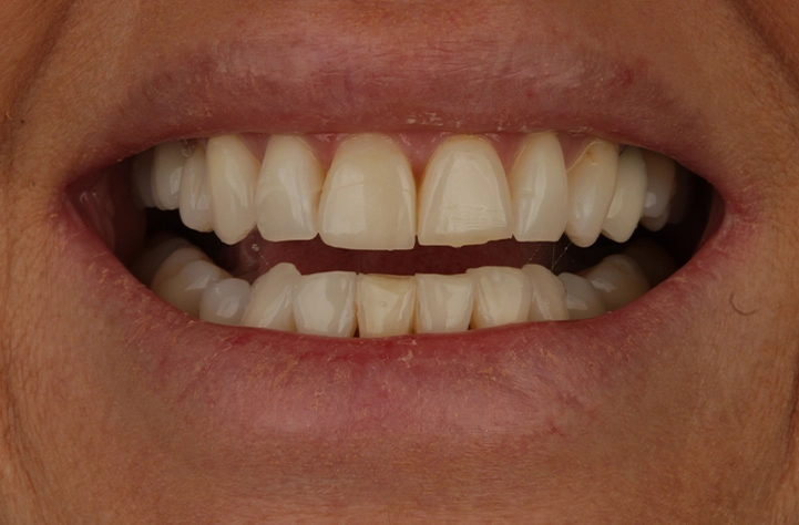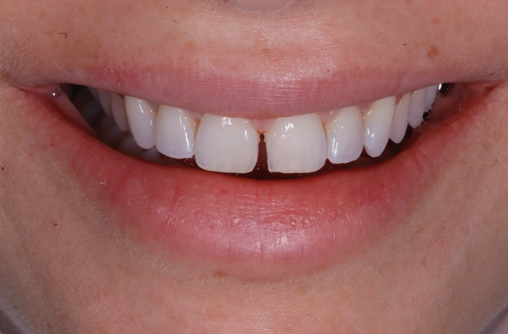 Fechamos espaços entre os dentes (diastemas) com resina ou porcelana, criando um sorriso mais harmônico e uniforme, geralmente sem desgaste.