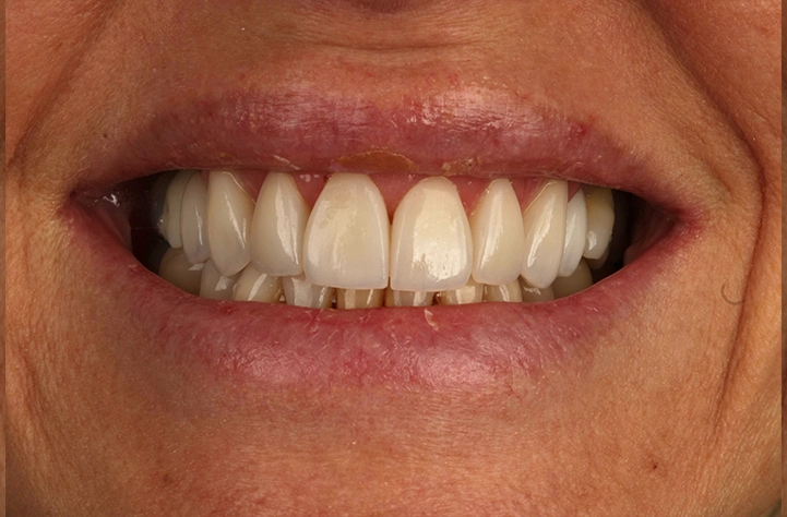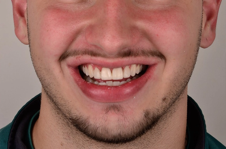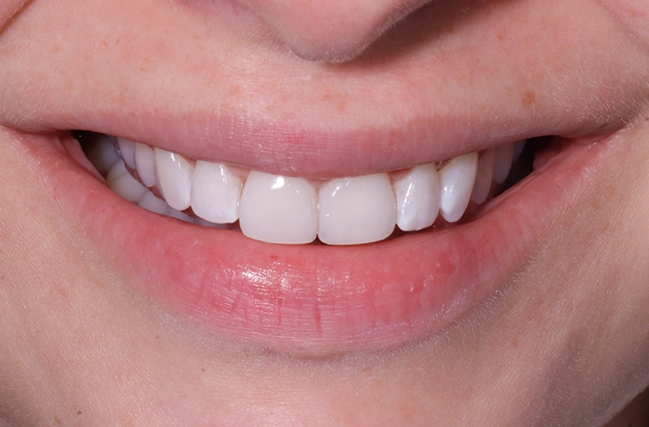 Fechamos espaços entre os dentes (diastemas) com resina ou porcelana, criando um sorriso mais harmônico e uniforme, geralmente sem desgaste.